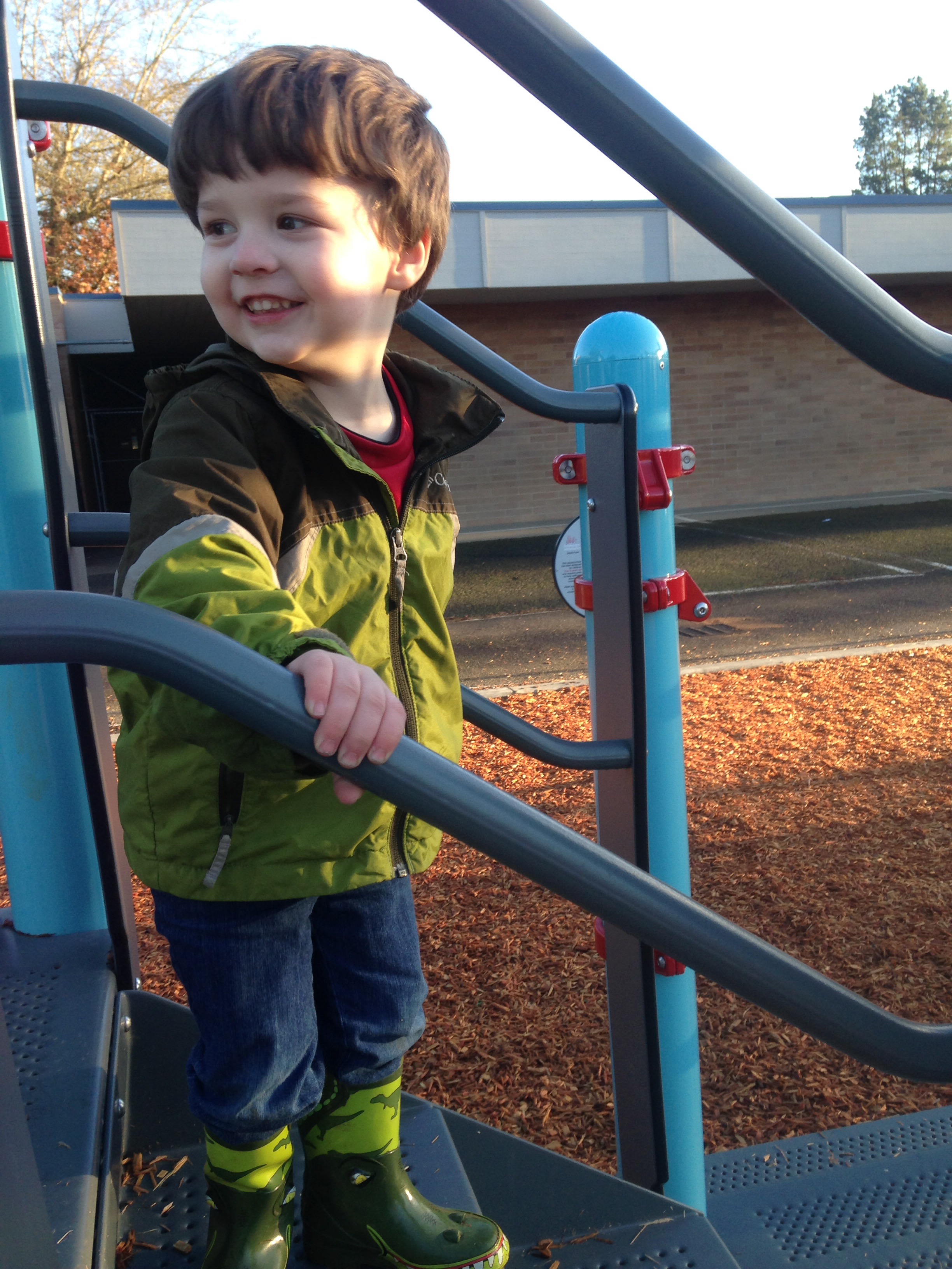 It can be difficult to remember in the winter with the rain and snow and ice, but going outside and playing can really turn around a kid’s grumpy or whiny attitude. We’ve never had a problem convincing our son to play outside as he’s always really loved it. But it has been harder for me to find the motivation since I leave when the sun has not long been up most days and get home after it has set. We have lots of great toys inside and heat and sometimes you just feel tired after a day of work.