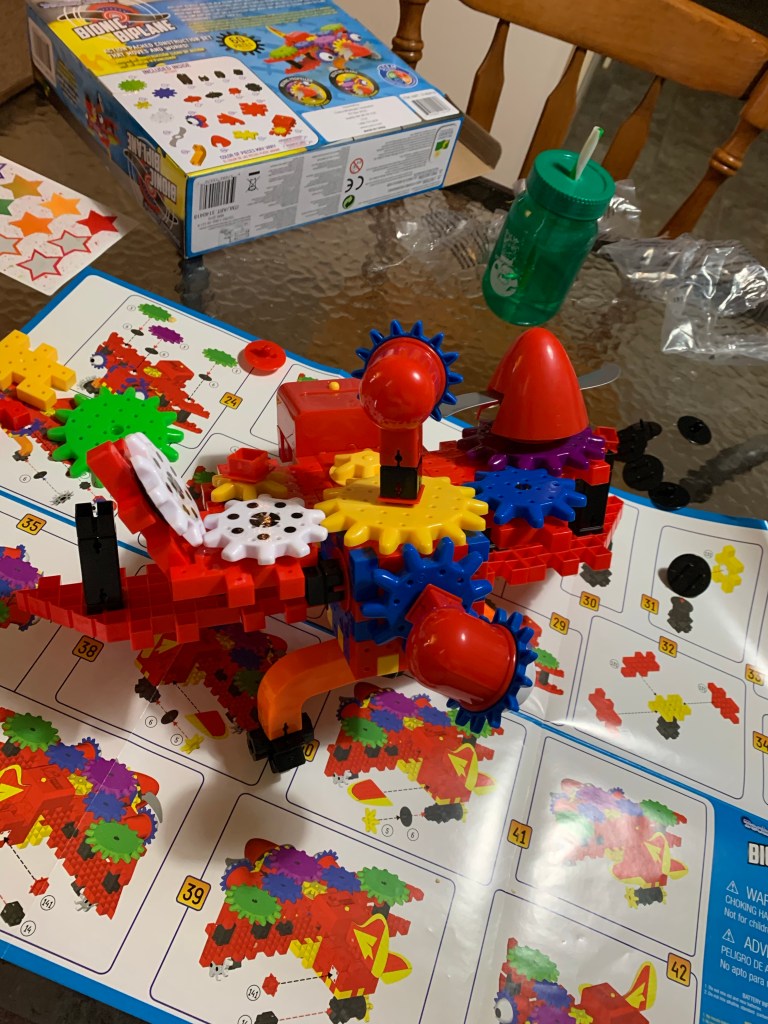 He went on to amaze me by figuring out, with very little assistance, how to get all the gears and pieces to move and be placed on the build in the way that made sense in his brain. He wasn’t worried about eyes lining up or wings being in the right place. He had his own vision for what he thought would be cool, and used all the pieces at his disposal to make a creation that was all his own.