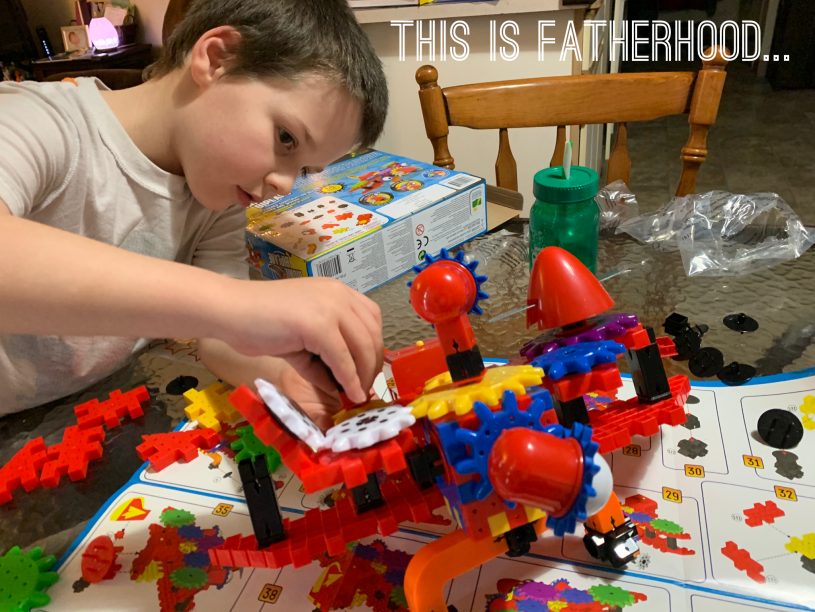 The most recent example of this is when he asked me to build one of his construction toys that he had gotten for Christmas. It was a very cool gift, but one that had taken a backseat to some of the other things he received so we were just getting to building it a few days ago. As we started, he wanted me to follow the directions and build it myself as he doesn’t seem to enjoy following the directions for builds very much. He does it well when he wants to, but it doesn’t come as naturally for him as creating something different from his own brain does. He worked on opening the battery pack with a screwdriver while I dutifully put the pieces of this eventual airplane together.
