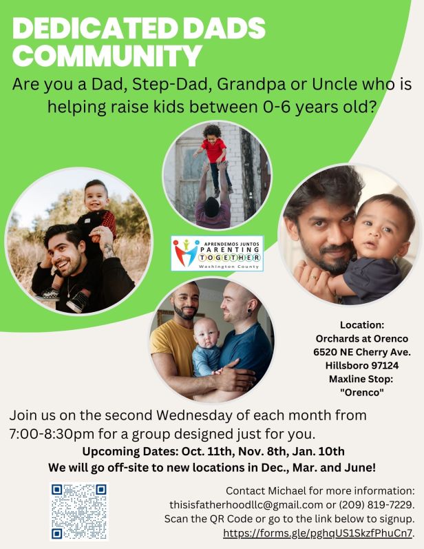 Please check out the new Dedicated Dads and Dads and Kids Play and Learn Group Page here for more information. If you’re a Dad or male caregiver in Washington County we would love to have you come and join us!